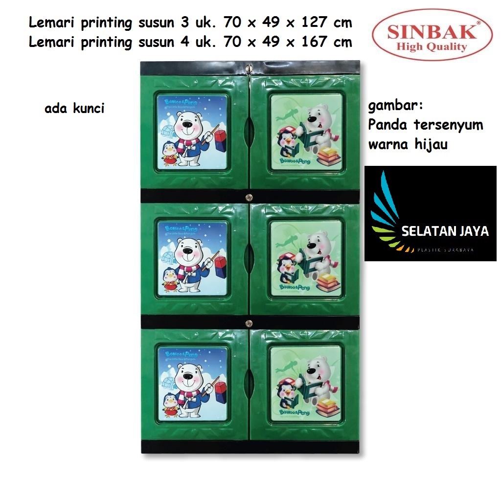 Lemari plastik kuat pintu 2 susun 3 merk Sinbak. lemari plastik untuk kamar tidur, kamar anak anda, rumah kos, rumah kontrakan dan lain sebagainya. ada susun 3 dan susun 4, ada kunci di tiap tingkat lemari. keunggulannya kuat tahan tekanan, harga sebanding dengan kualitasnya yang bagus. silahkan datang ke kantor kami 085232099000, wa 081331351580.
